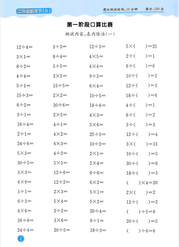25秋小状元作业本测评卷计算三本2年级下人教版数学ST2XM03