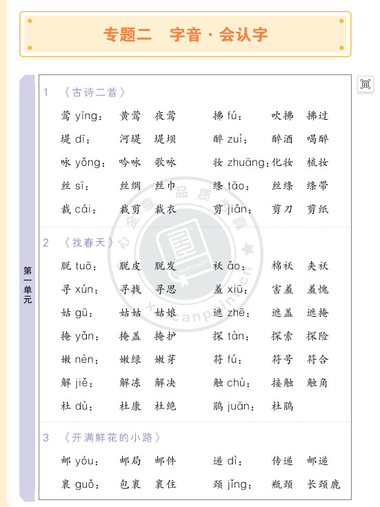 2025秋知识梳理语文二年级下期末复习版ST2XC02