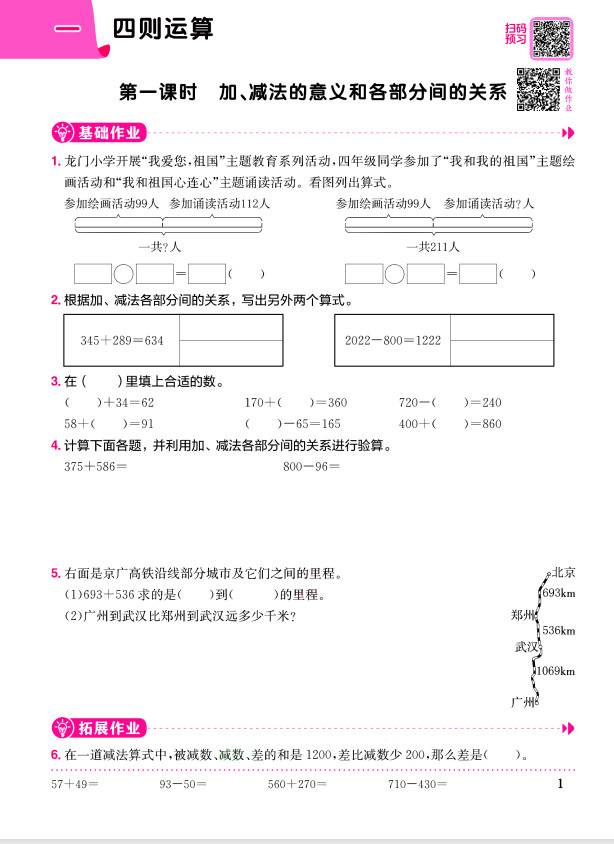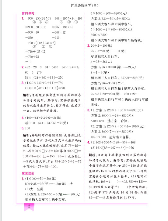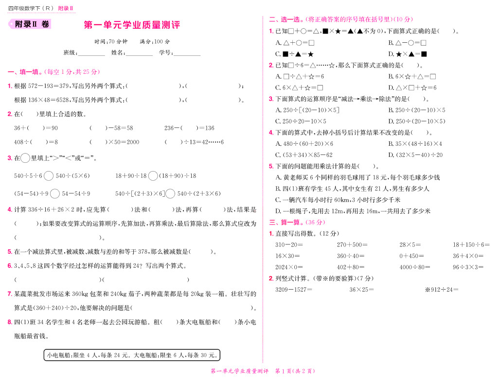 25秋小状元作业本测评卷两本4年级下人教版数学ST2XM03
