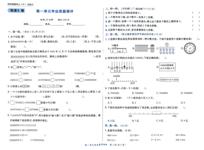 25秋小状元作业本测评卷两本4年级上人教版数学ST2XM03