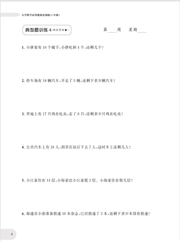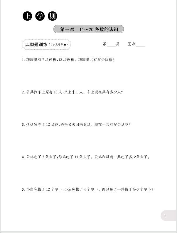 周计划数学应用题强化训练-1年级ST2XM01