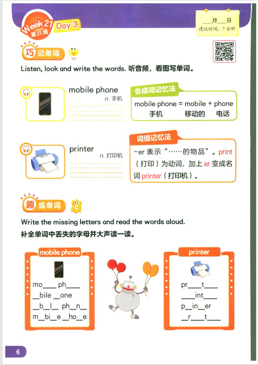 剑桥英语单词天天练3级上册1-6分册ST2XE01