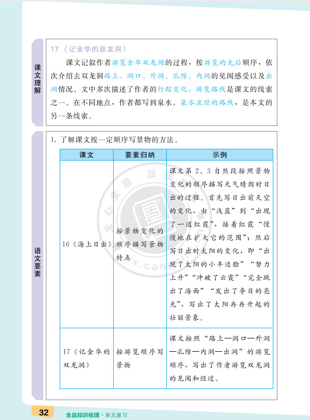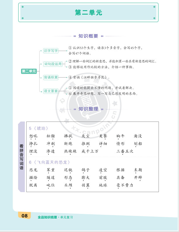 2025秋知识梳理语文四年级下册单元复习版ST2XC02