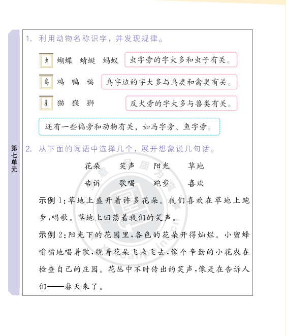 2025秋知识梳理语文一年级下期末复习版ST2XC02