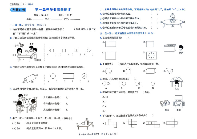 25秋小状元作业本测评卷两本3年级上人教版数学ST2XM03