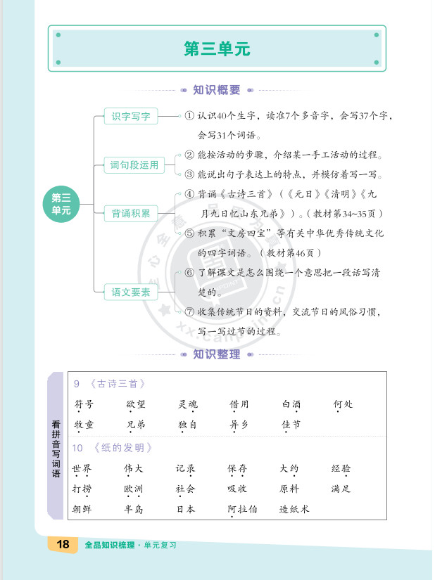2025秋知识梳理语文三年级下册单元复习版ST2XC02