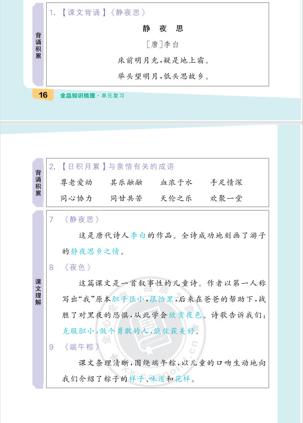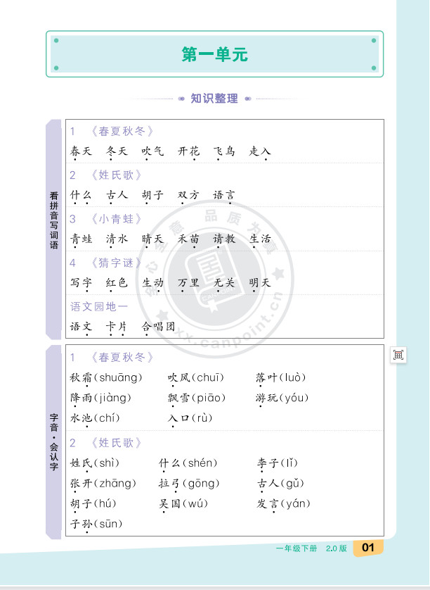 2025秋知识梳理语文一年级下册单元复习版ST2XC02