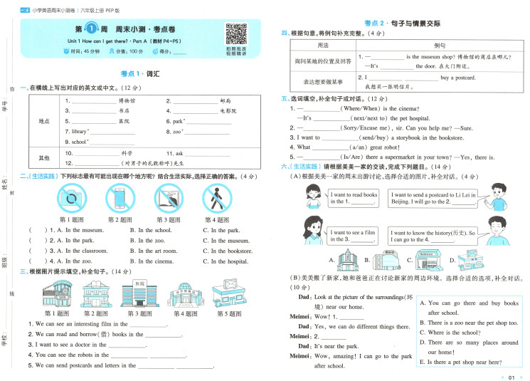 2025秋一本周末小测卷英语6上PEPST2XE03