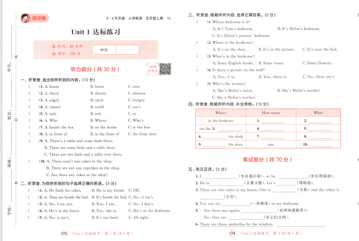 五年级英语上册译林版25秋《53天天练》+测评卷+知识清单ST2XE05