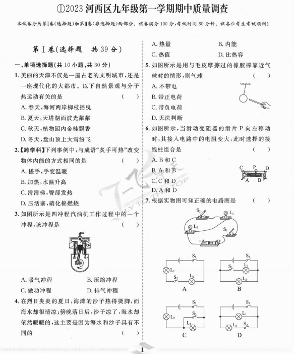 中考模拟试题汇编(2024版)-物理ST2C010104