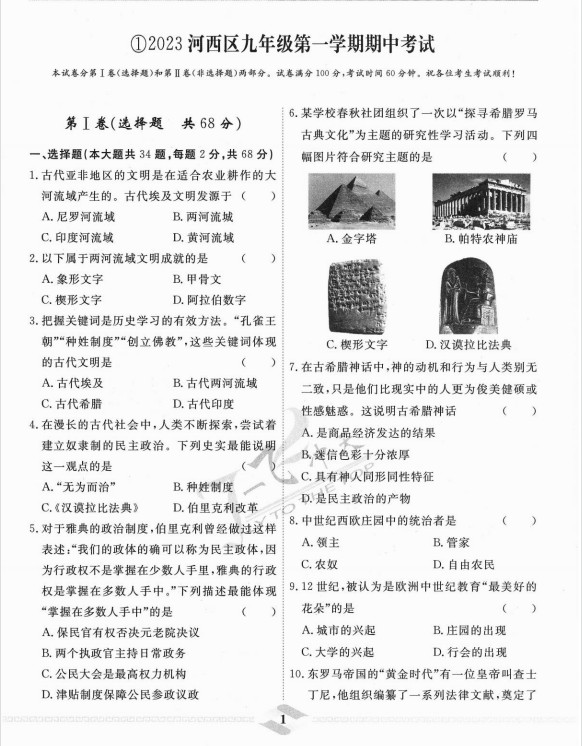 中考模拟试题汇编(2024版)-历史ST2C010106