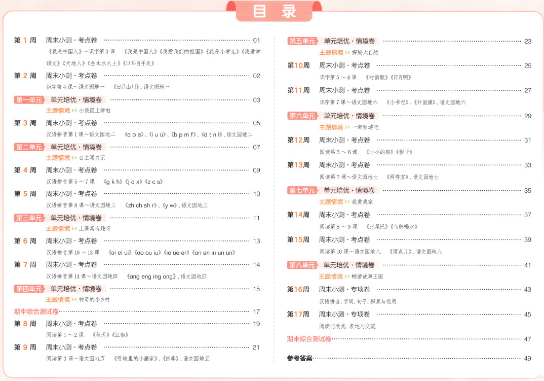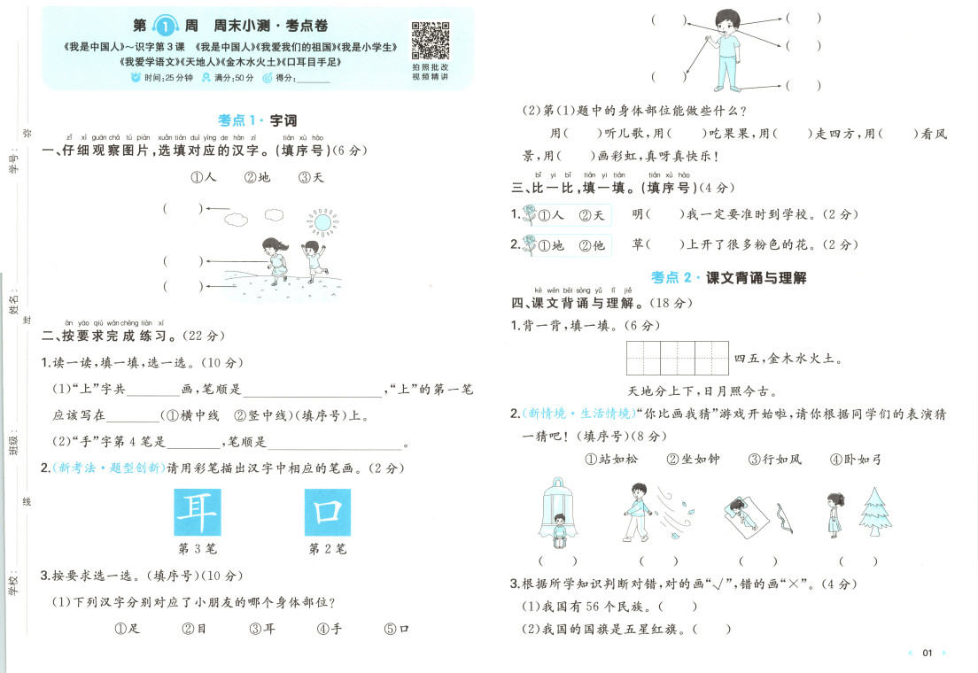 2025秋一本周末小测卷语文1上ST2XC0301
