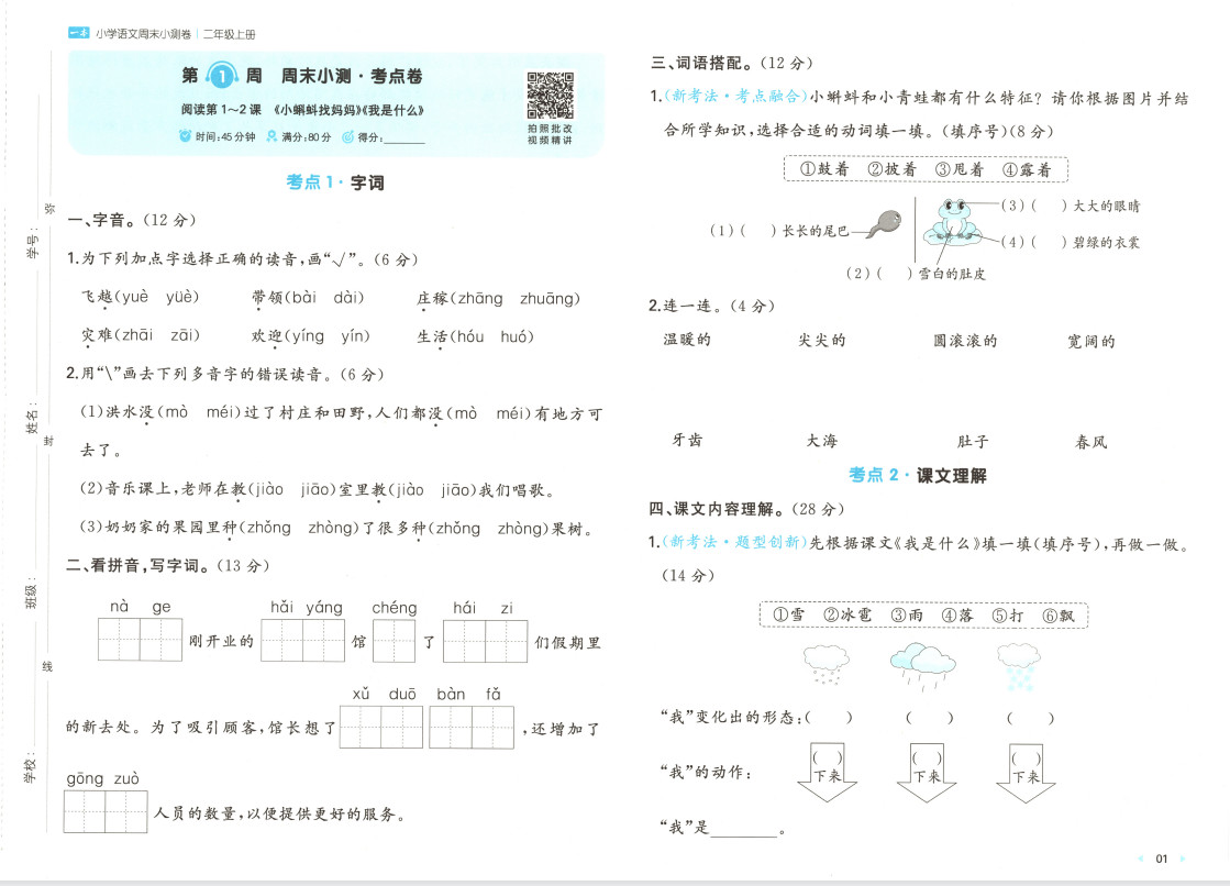 2025秋一本周末小测卷语文1上ST2XC0302