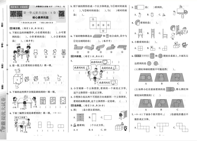 2025秋学霸提优大试卷 数学人教版3上ST2XM0403