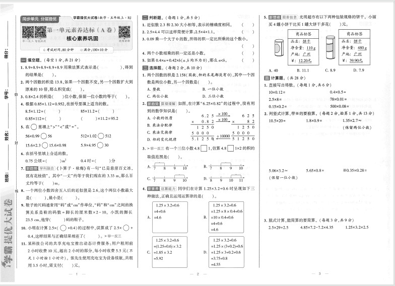 2025秋学霸提优大试卷 数学人教版5上ST2XM0405