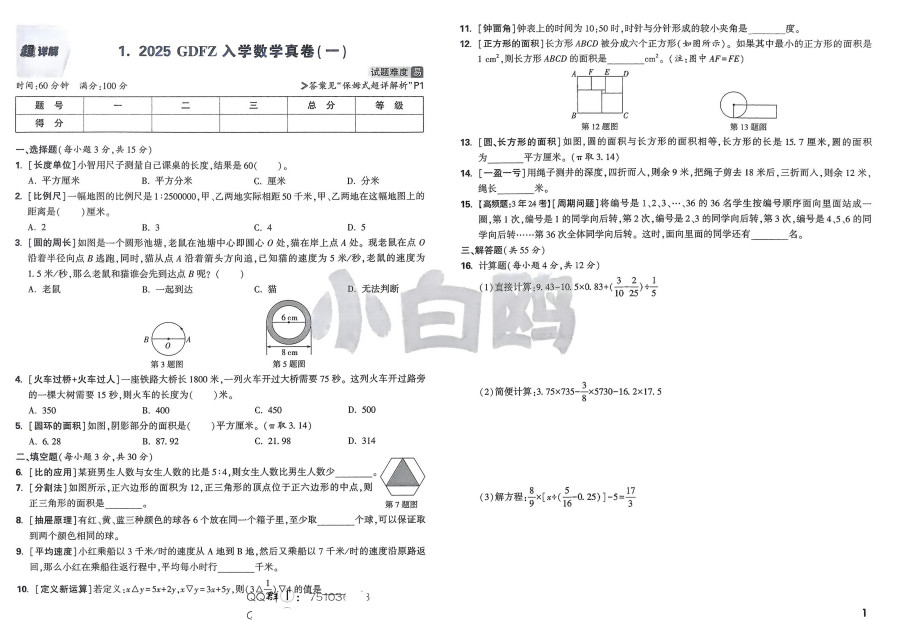 陕西及全国2026小升初重点中学招生真题超详解》数学ST2XM06