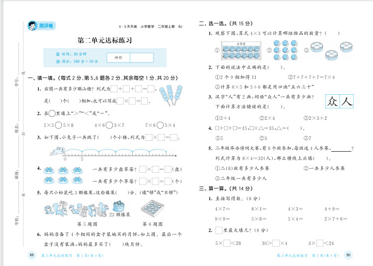 二年级数学上册北京25秋《53天天练》ST2XM0702