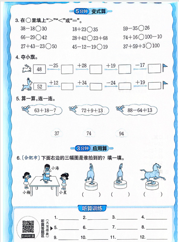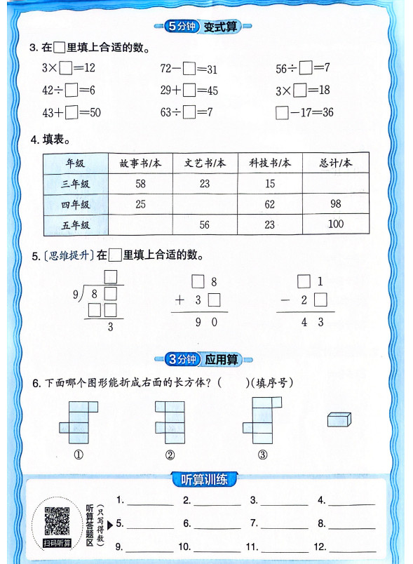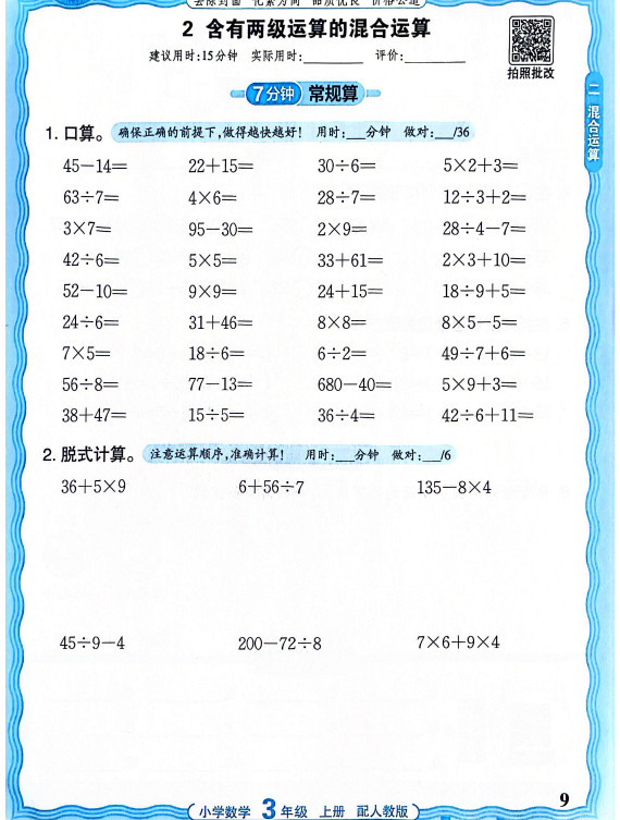 新版人教版数学三年级上册活页计算ST2XM0803