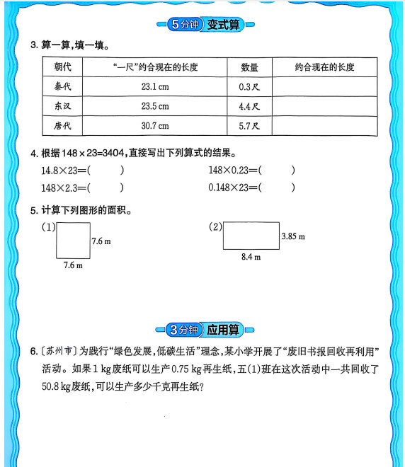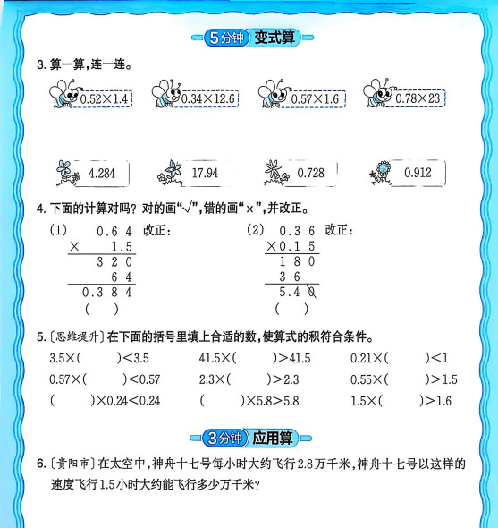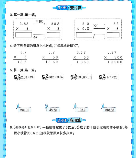 新版人教版数学五年级上册活页计算ST2XM0805
