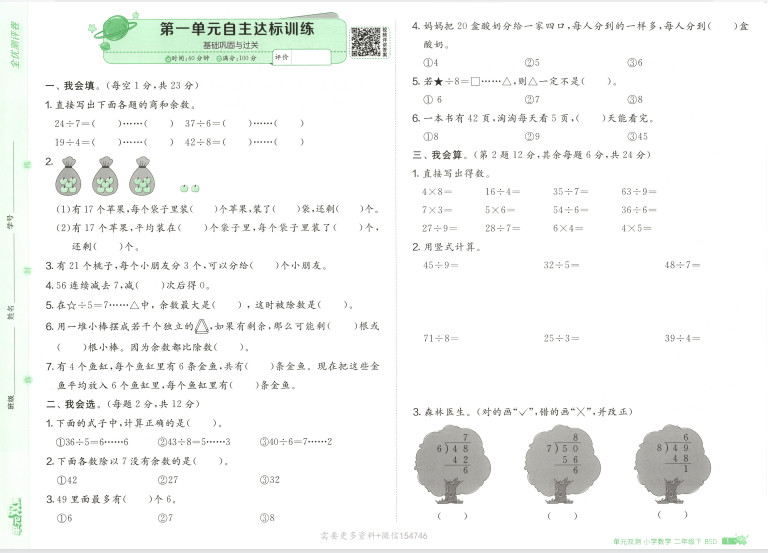 25春单元双测数学二年级.下ST2XM1302