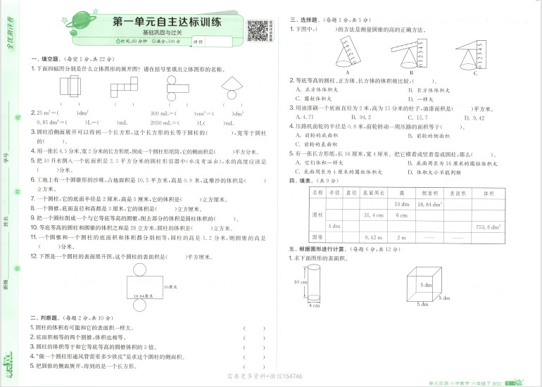 25春单元双测数学六年级.下ST2XM1306