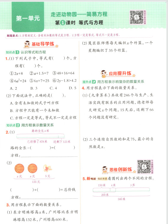 综合应用创新题典中点.四年级数学 下 青岛版 五四学制ST2XM1404