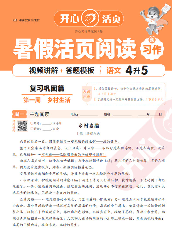 【开心】暑假活页阅读-4升5ST2XC0404