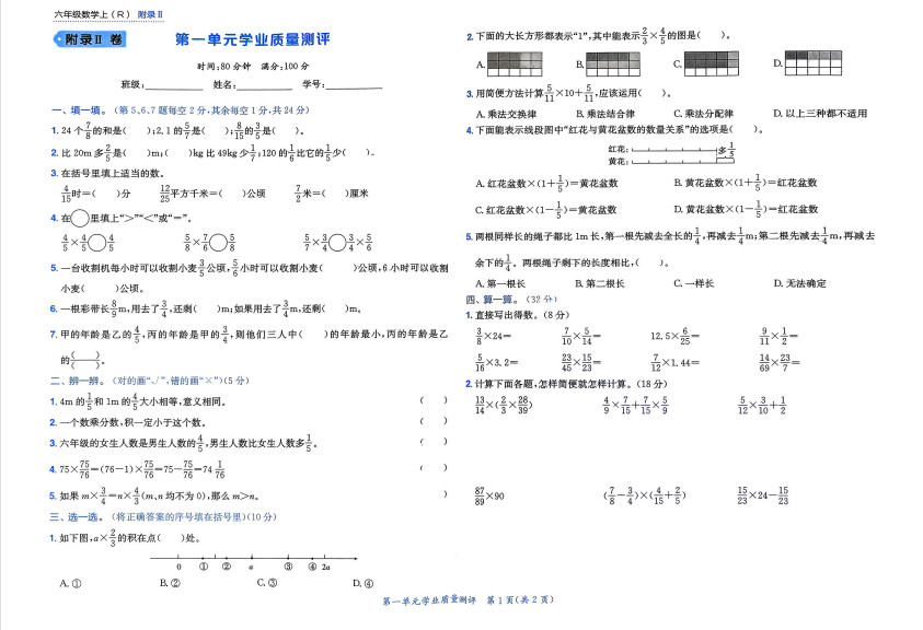 25秋小状元作业本测评卷两本6年级上人教版数学ST2XM03