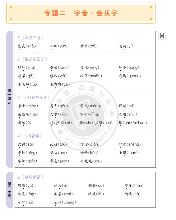 2025秋知识梳理语文五年级下期末复习版ST2XC02