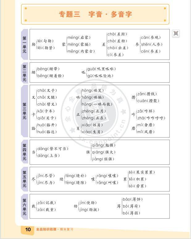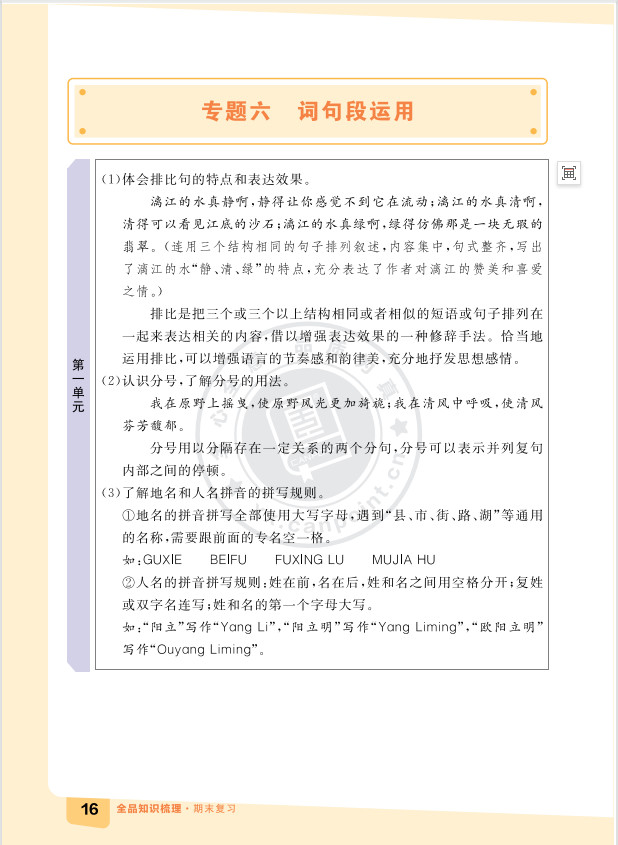 2025秋知识梳理语文六年级上期末复习版ST2XC02
