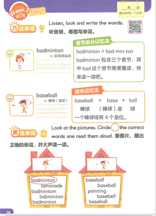 剑桥英语单词天天练1级下册1-6分册ST2XE01
