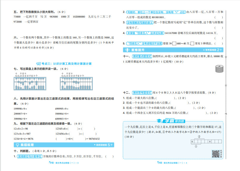 25秋学霸全程期末卷小学数学RJ四上ST2XM02