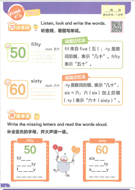 剑桥英语单词天天练2级下册1-6分册ST2XE01