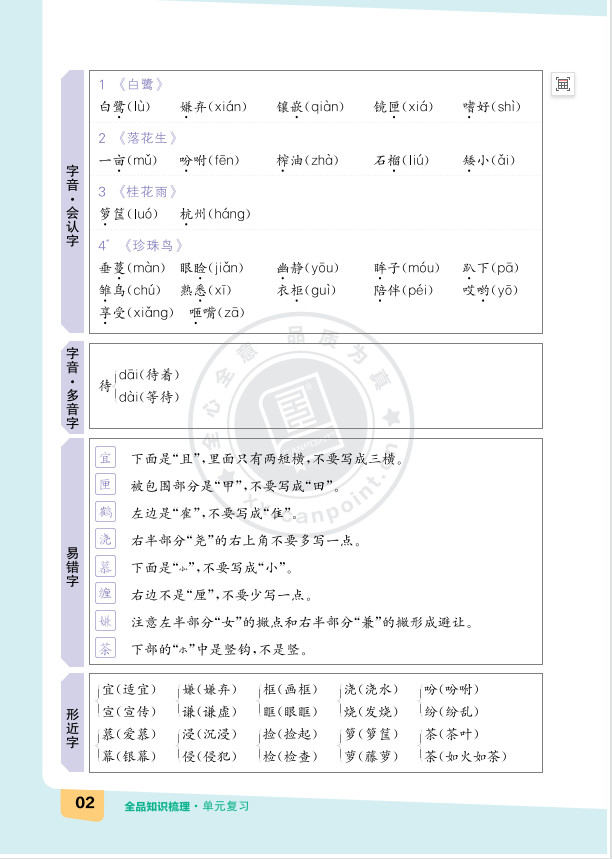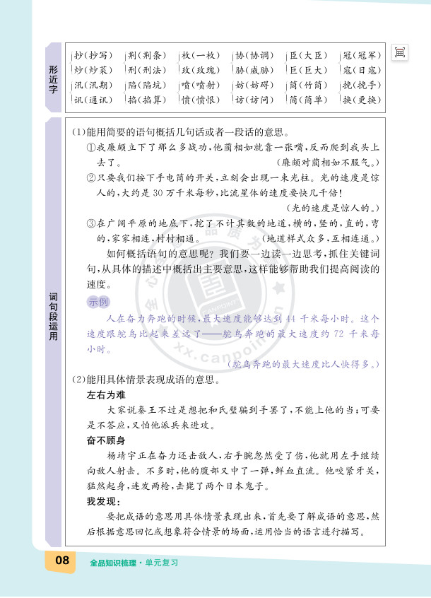 2025秋知识梳理语文五年级上册单元复习版ST2XC02